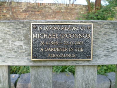Michael O'Connor was an enthusiastic young member of the club in the 1980's. This memorial plaque is on a park bench in Well Hall Pleasaunce, Eltham